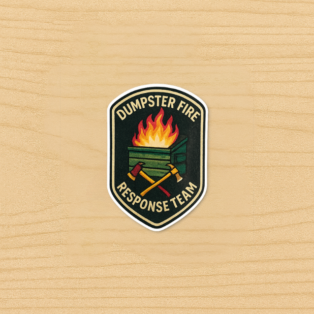 Dumpster Fire Sticker – Funny Patch Style Vinyl Decal for Nurses, EMTs, Firefighters & Healthcare Workers, Laptop & Water Bottle Humor